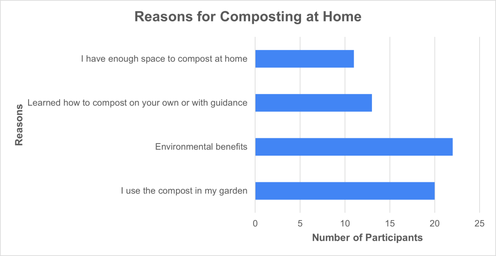“Coming up with programs that meet people where they are, I probably would not be composting like when I lived in an apartment because I didn’t have the space. Drop-off points could help people interested in composting outside their homes.” Robin – study participant and home composter